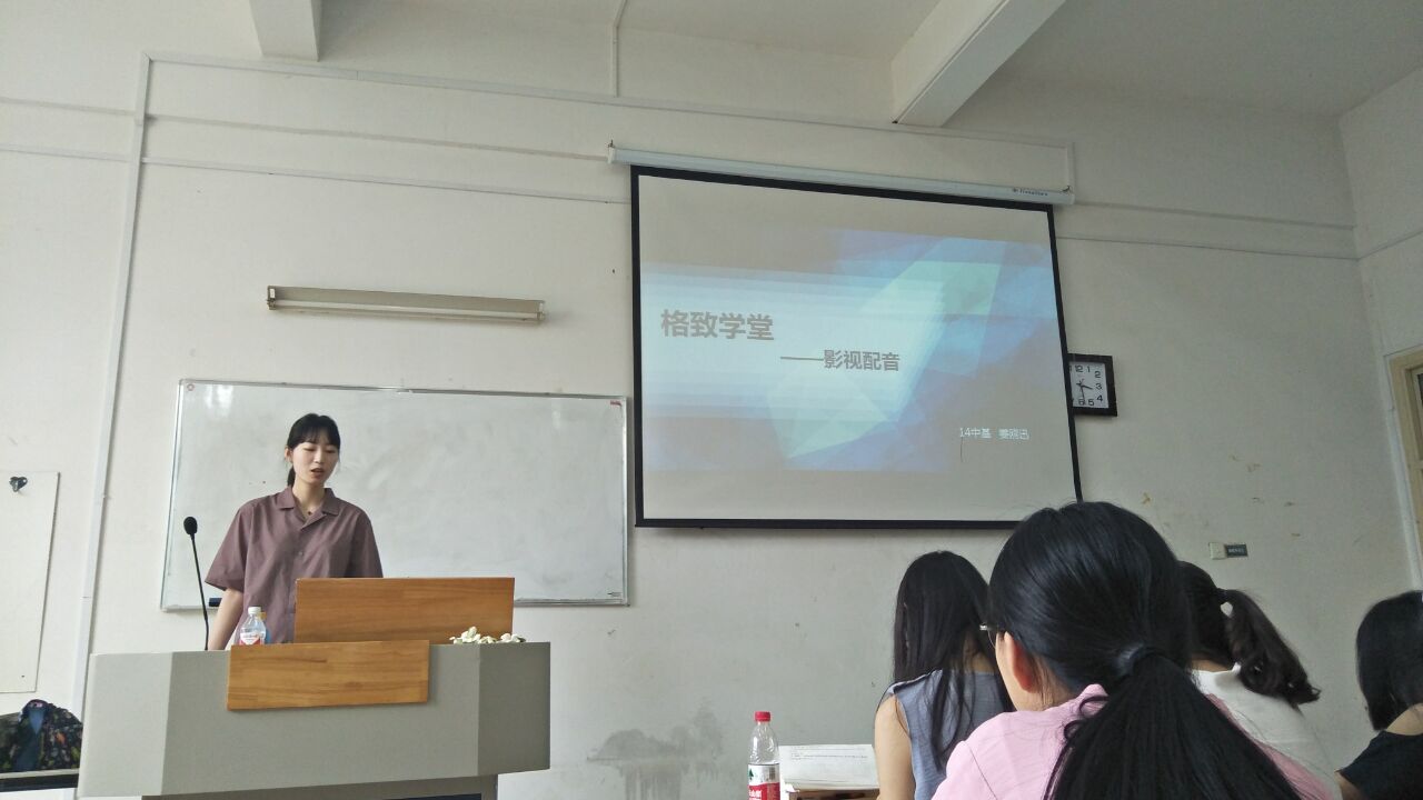 6月7日下午,文学院14级中文基地班学生姜鸥迅、陈羲分别为17级汉语言文学一二班的同学带来了一次主题为“影视配音”的格致学堂课程。