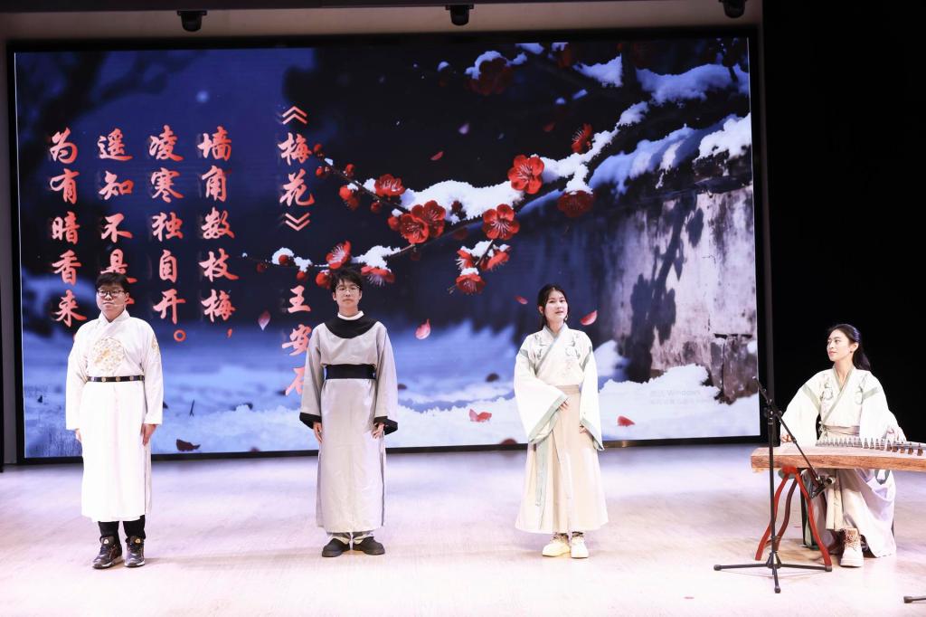 整场表演形神兼备,“琴园汉韵”吟诵团以声入诗、以情传韵,让《梅花》《登鹳雀楼》《静夜思》等沉睡在典籍中的经典诗词在音韵与吟诵的碰撞中焕发勃勃生机,赢得评委与现场观众的阵阵掌声。