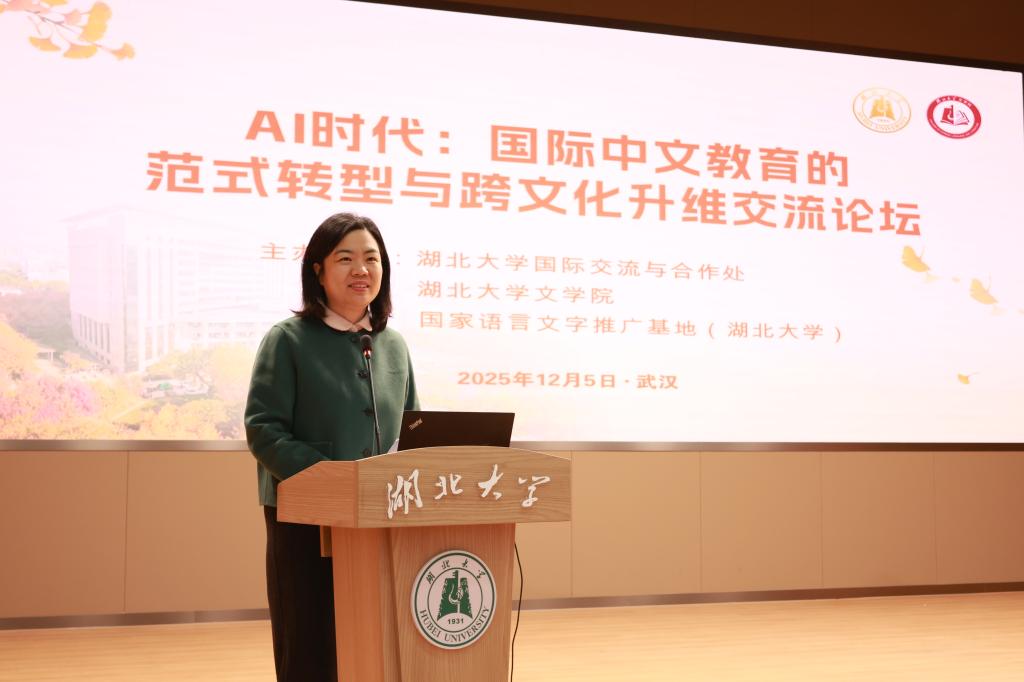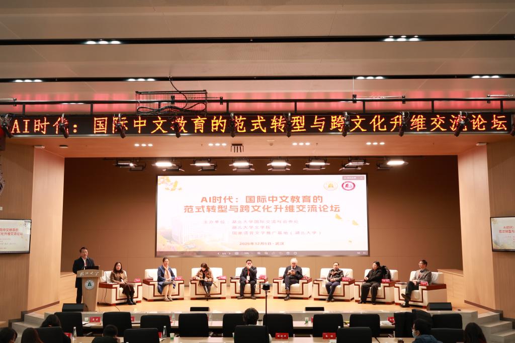 12月5日上午,“AI时代国际中文教育的范式转型与跨文化升维交流论坛”在湖北大学武昌校区双创大楼三楼报告厅召开,作为“世界著名科学家来鄂讲学计划”活动之一,旨在通过中法跨文化学术交流推动AI时代国际中文教育的范式转型建构。