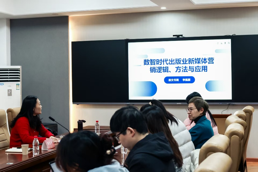 2026年1月19日下午,崇文书局副总经理、编审李佩颖应邀前来湖北大学文学院讲学,题为《数智时代出版业新媒体营销逻辑、方法与应用》。讲座由杜朝晖教授主持,文学院文献学和出版专业师生共约50人参与。