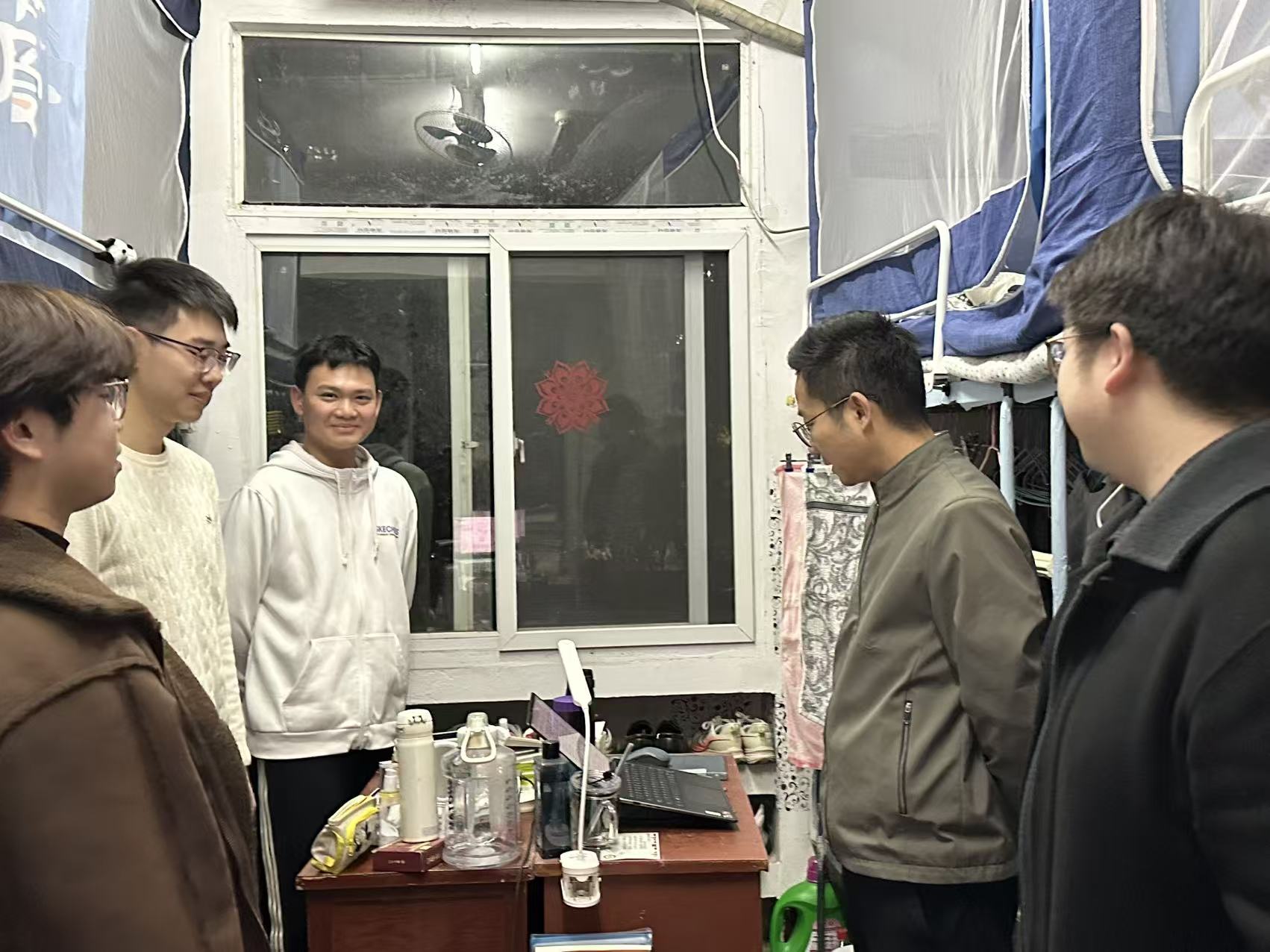 学院领导带队分头走访普宿8栋、9栋学生寝室,与同学们面对面交流。过程中,老师们细致察看宿舍安全卫生状况,叮嘱同学们注意冬季用电安全,杜绝违规电器,共同筑牢安全防线。同时,他们围绕专业学习、考研备考、实习实践等话题与同学们深入交流,结合中文专业特色与就业形势提出个性化建议,并认真记录同学们关于生活服务等方面的诉求,承诺及时跟进解决。