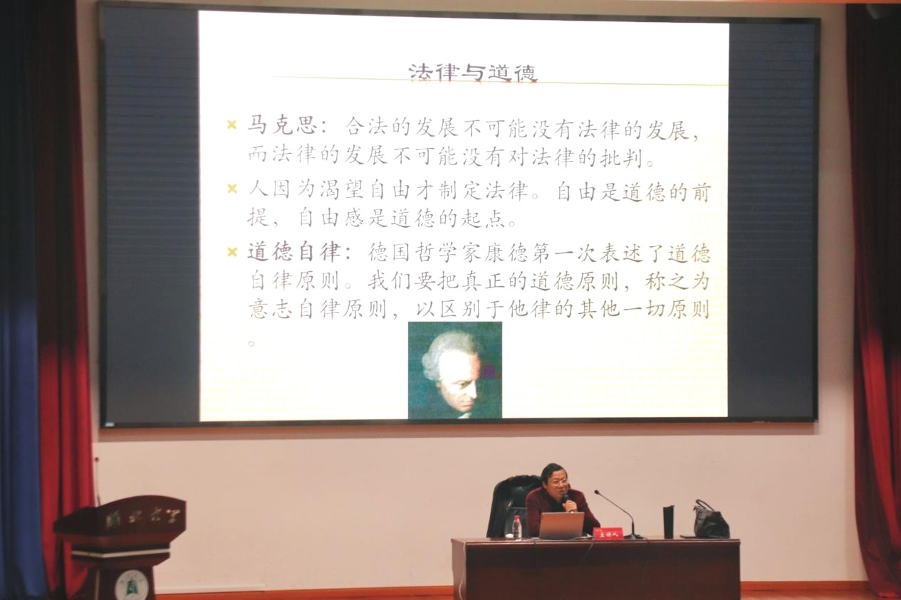 杨海军主讲《法治与信仰——新时代大学生成人成才教育》专题课。他传达领学党的二十届四中全会精神,详细阐释信仰与法治的深刻内涵及时代意义,引导同学们以法治为准绳践行远大理想。