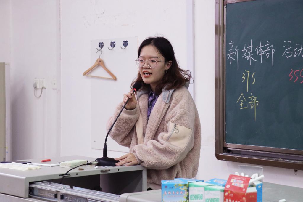 见面会由2018级活动部的马精业主持。他强调文院青传的学生组织性质和宣传写作职能,表达2018级干事上一阶段工作感悟和组织归属感,并对2018级新成员表示欢迎和祝贺。主编刘昕受邀发表讲话。她指出,我院青传立足本院,充分依靠全院师生开展工作,新成员应牢记“题材贴近生活,文章挖掘深度”的工作要求;同时要坚持“文字传递正能量”,反映我院学生精神风貌和学识素养,做到“文章传播思想,文字表现素养”。各部门部长随后上台总结新成员学习情况,汇报工作进度,并且预告下阶段的任务内容。